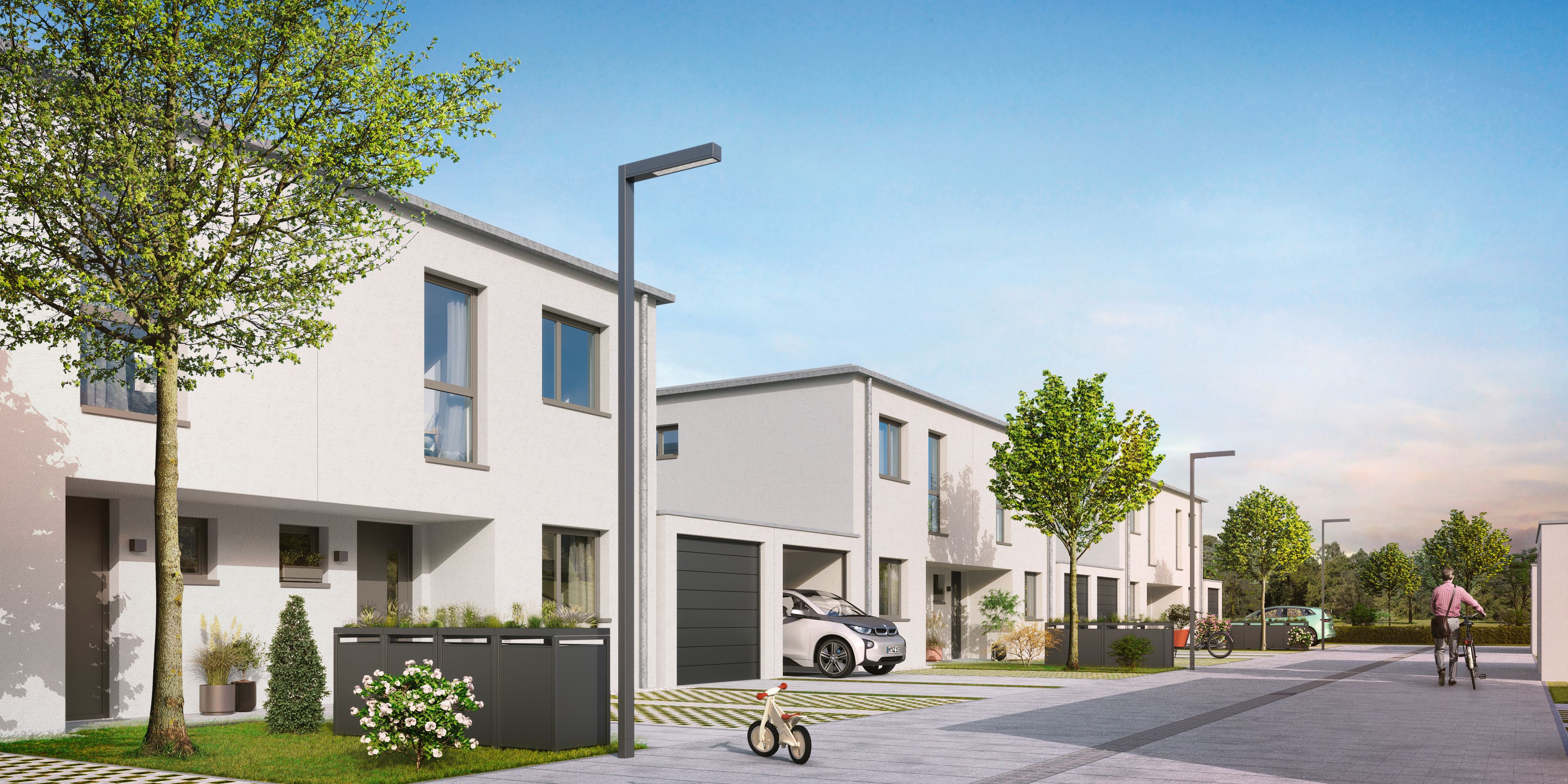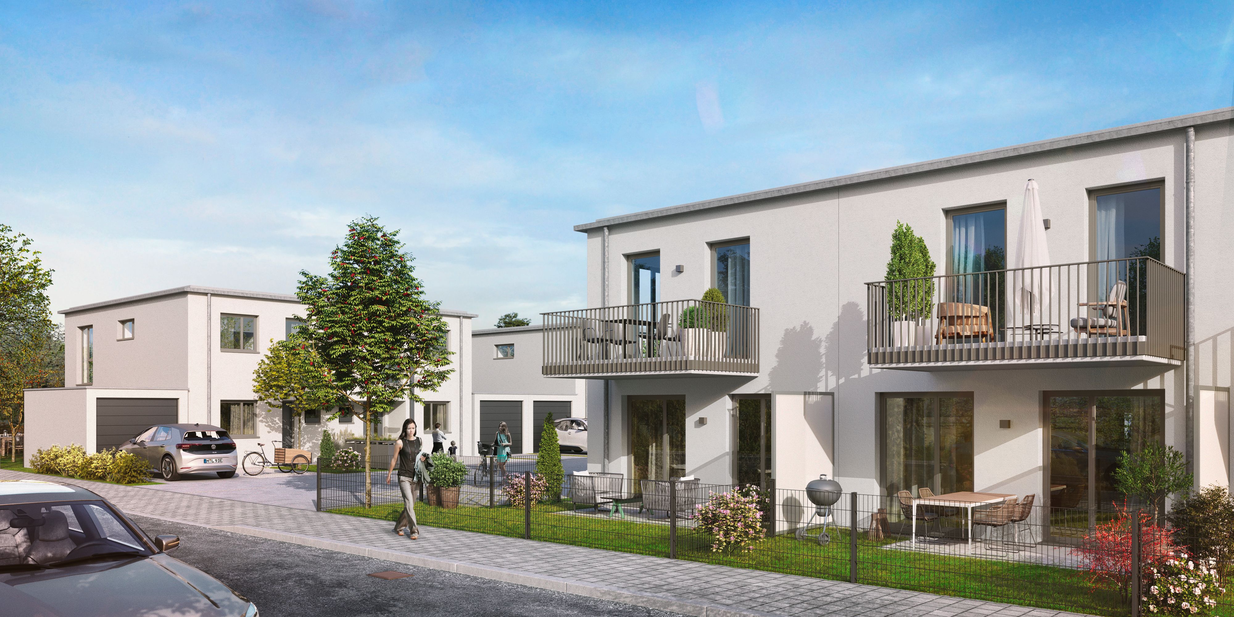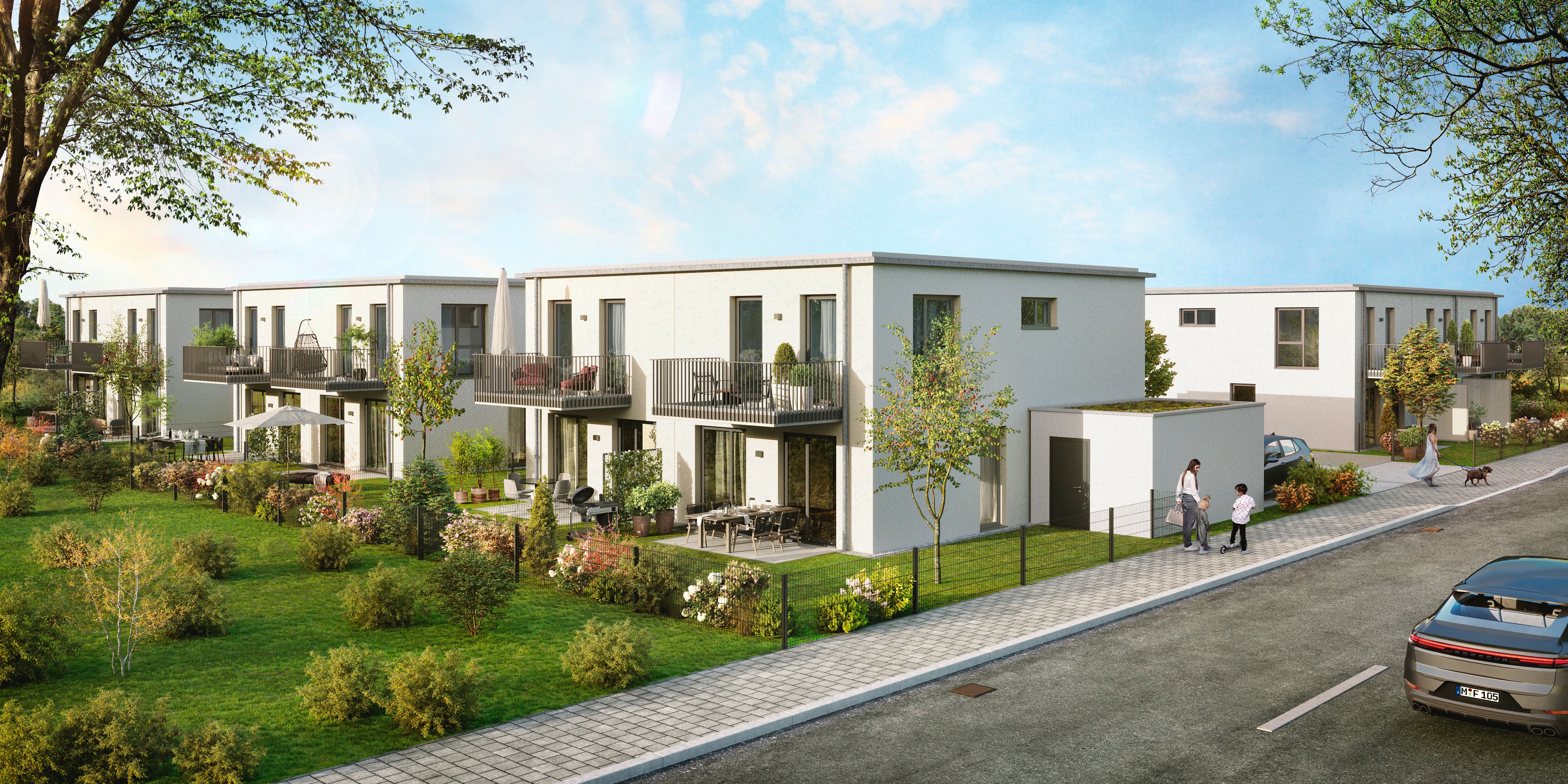 Nur 20 Kilometer östlich von München, am Ortsrand von Poing, entstehen zehn kompakte Doppelhäuser und drei Reihenhäuser - ideal für Familien mit Kindern.