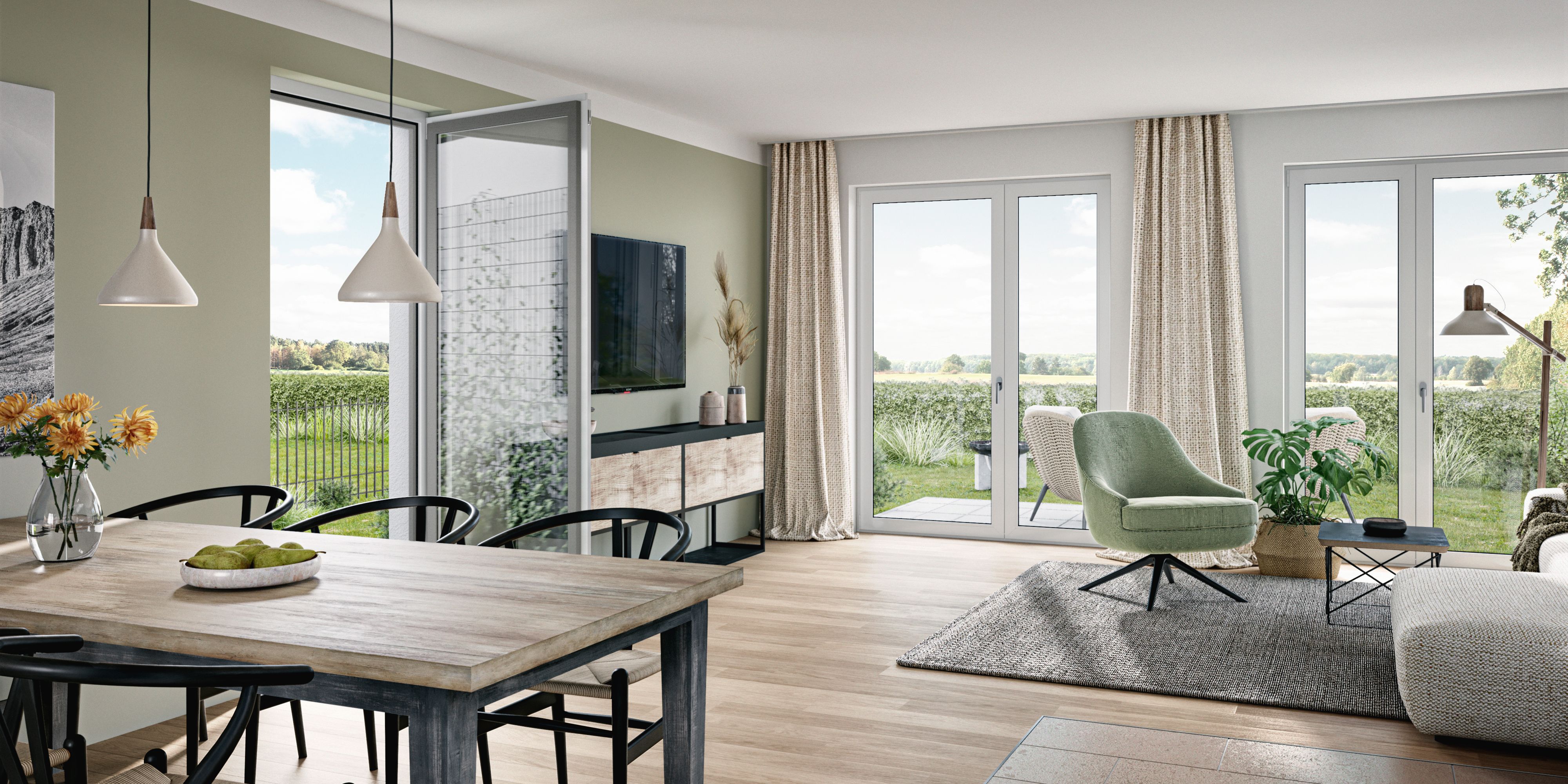 Helle, lichtdurchflutete Räume durch große Fensterflächen